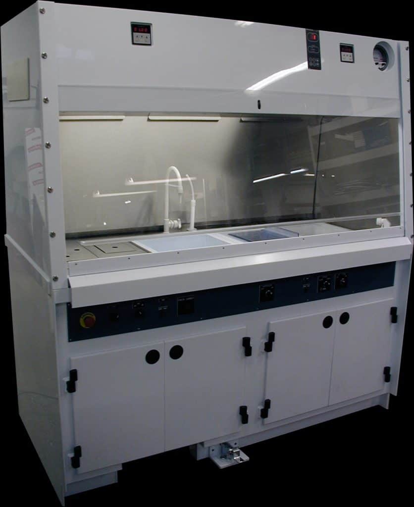 At Plastic Design Industries, we specialize in providing fume hoods for the semi conductor, pharmaceutical and biomedical industries where laboratory technicians use dangerous chemicals and substances that need to be exhausted away. We offer several different types of hoods to meet our customers’ unique applications and specifications, including sliding sash, angled open front, fully isolated, table top, stand-alone, fully exhausted base cabinets, bench-top, and vertical laminar flow.