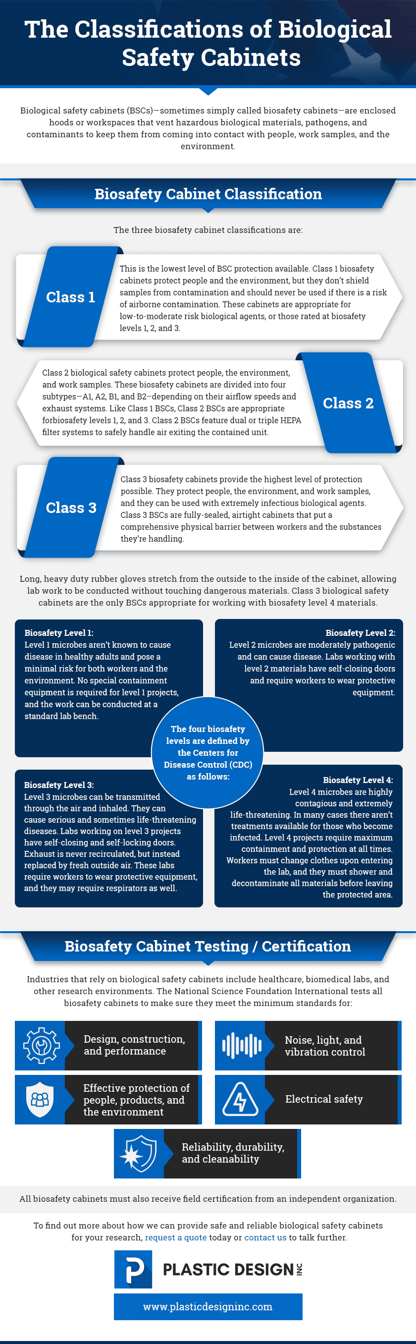 Industries that rely on biological safety cabinets include healthcare, biomedical labs, and other research environments. The National Science Foundation International tests all biosafety cabinets to make sure they meet the minimum standards for: