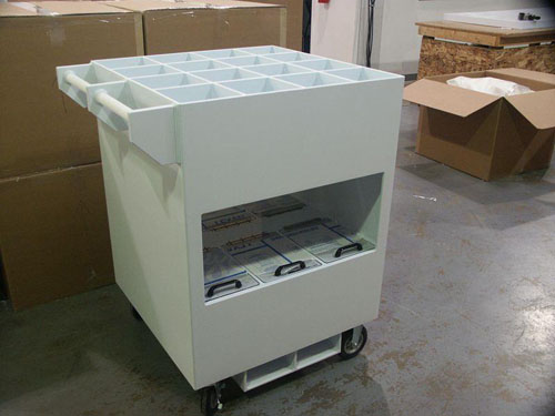 Transporting acids and solvents into clean room environments requires thoughtful design and intrinsically safe features. Plastic Design Industries has designed and built a wide variety of transport carts for the transport of these chemicals into clean room environments.